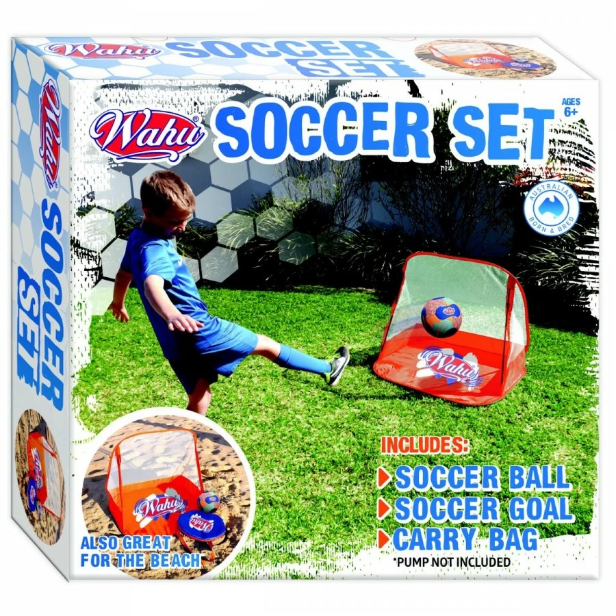 The Soccer Set by Wahu can be set up anywhere to enjoy extended periods of fun and games. In the box, you will find a soccer goal, a soccer ball, four sturdy pegs to set up the goal, and a bag to carry the set easily wherever you go. You will also find instructions to assemble the soccer goal to start playing. The soccer set can be set up in no time, and once the playing is done, it can be packed into the bag in a flash. The mini soccer ball included in the box is made with waterproof neoprene, and it has an internal air-filled bladder. You will have to inflate the ball when you take it out of the box. A pump is not included in the playset. Set up the soccer set in your backyard or take it to the beach for children to have loads of fun playing beach soccer. Small children will find this set to help build their confidence as they try to kick, throw, and catch the ball. When the goal is set up, it measures approximately 60cm high and 70cm wide at its base and 65cm deep. The soccer set is orange in colour and is recommended for children over 6 years old.